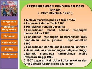 . Perjuangan memperkasakan pendidikan di Malaysia. Sejarah Malaysia bermula pada zaman Kesultanan Melayu Melaka iaitu sekitar tahun 1400 Masihi. Malaysia mempunyai masyarakat majmuk berbilang kaum.